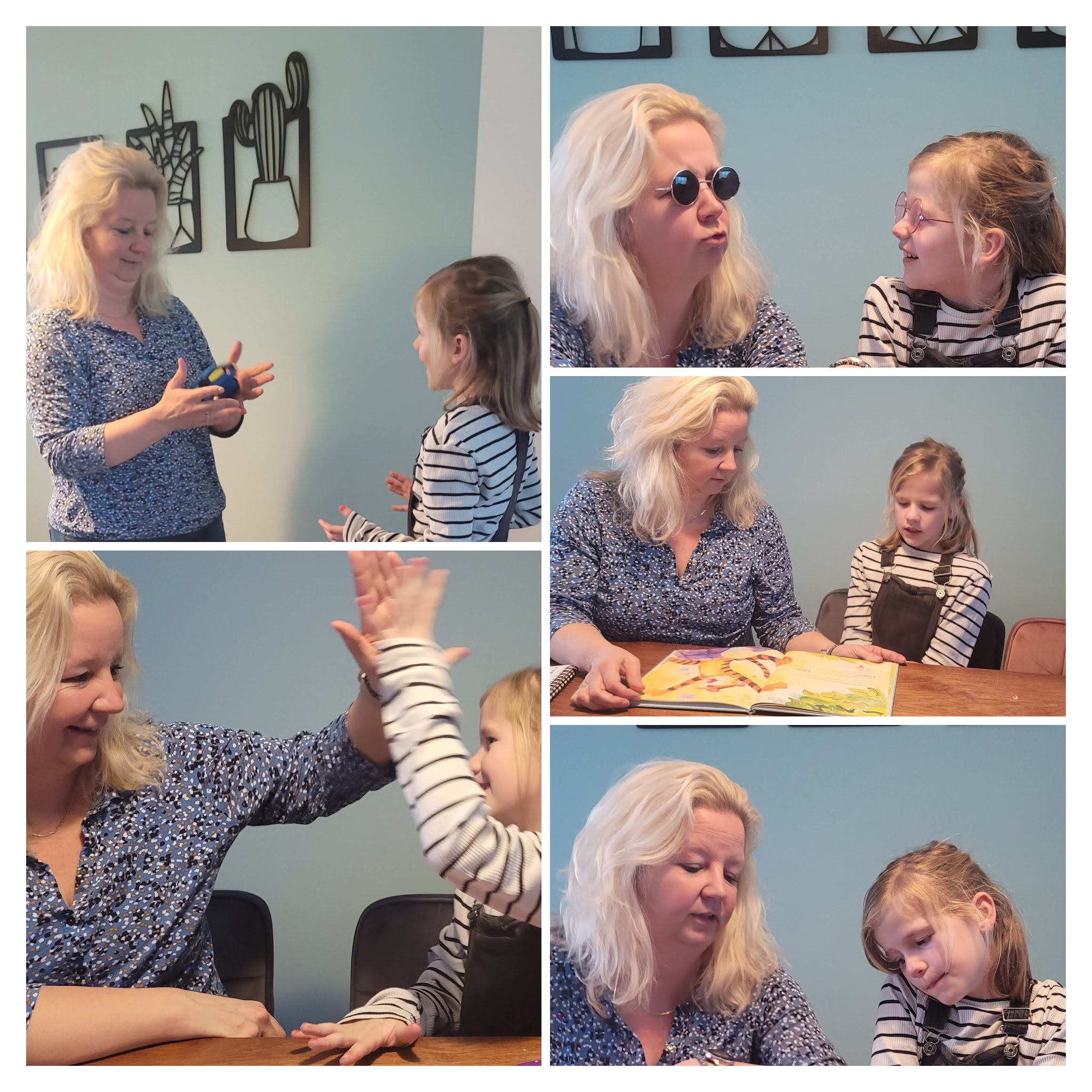 we doen spelletjes. Er ontstaat een ontspannen en veilige sfeer waardoor het kind zich op z’n gemak